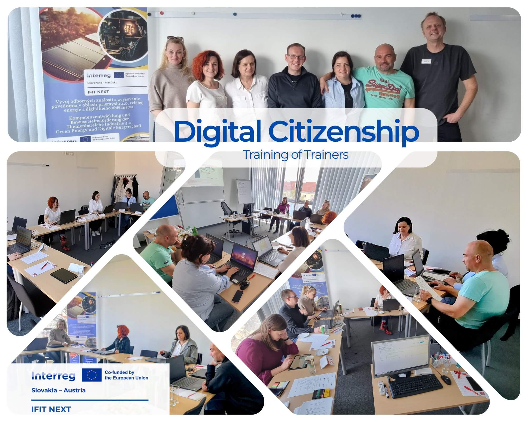 🎉 Toto sú naši 👩💼👩🏫🧑🏫👨💼 tréneri na digitálne občianstvo. Pripravení inšpirovať a vzdelávať naprieč hranicami. Šestica zo Slovenska a deviatka z Rakúska tvorí silný tím v rámci projektu IFIT NEXT, ktorý vznikol vďaka podpore programu Interreg SK-AT a prináša nové príležitosti pre digitálne vzdelávanie.